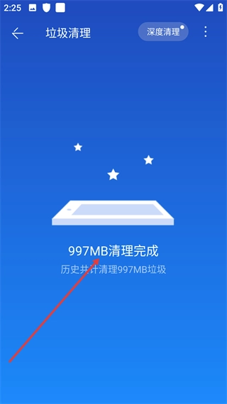 4、垃圾清理操作结束后,页面会显示“997MB清理完成”的提示,至此垃圾清理任务就完成了。