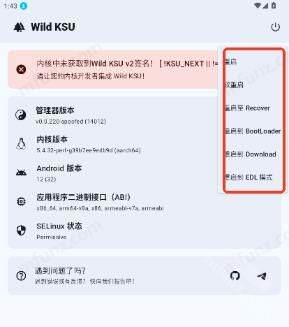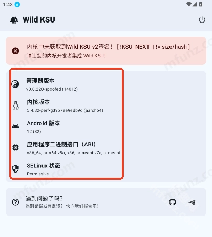 wild ksu手机版界面所有功能非常清晰,提供管理器版本、内核版本以及ndroid版本等多种root模式任你选择。首页还给新手小伙伴们提供了客服咨询入口,有任何问题可随时在线咨询!