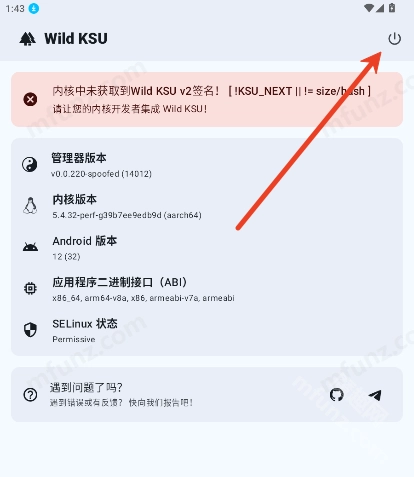 1、打开Wild KSU软件点击最上方的红色标语