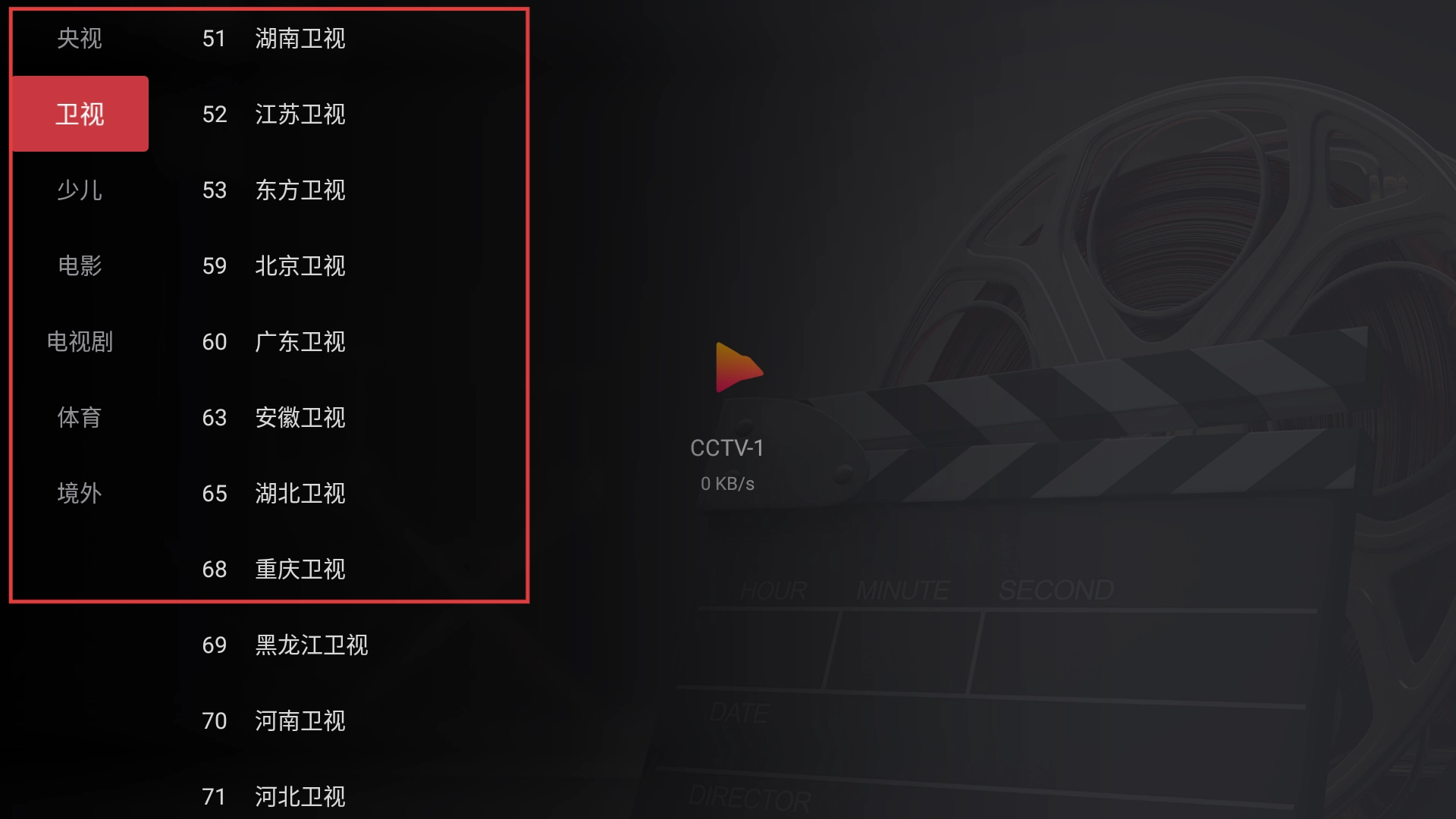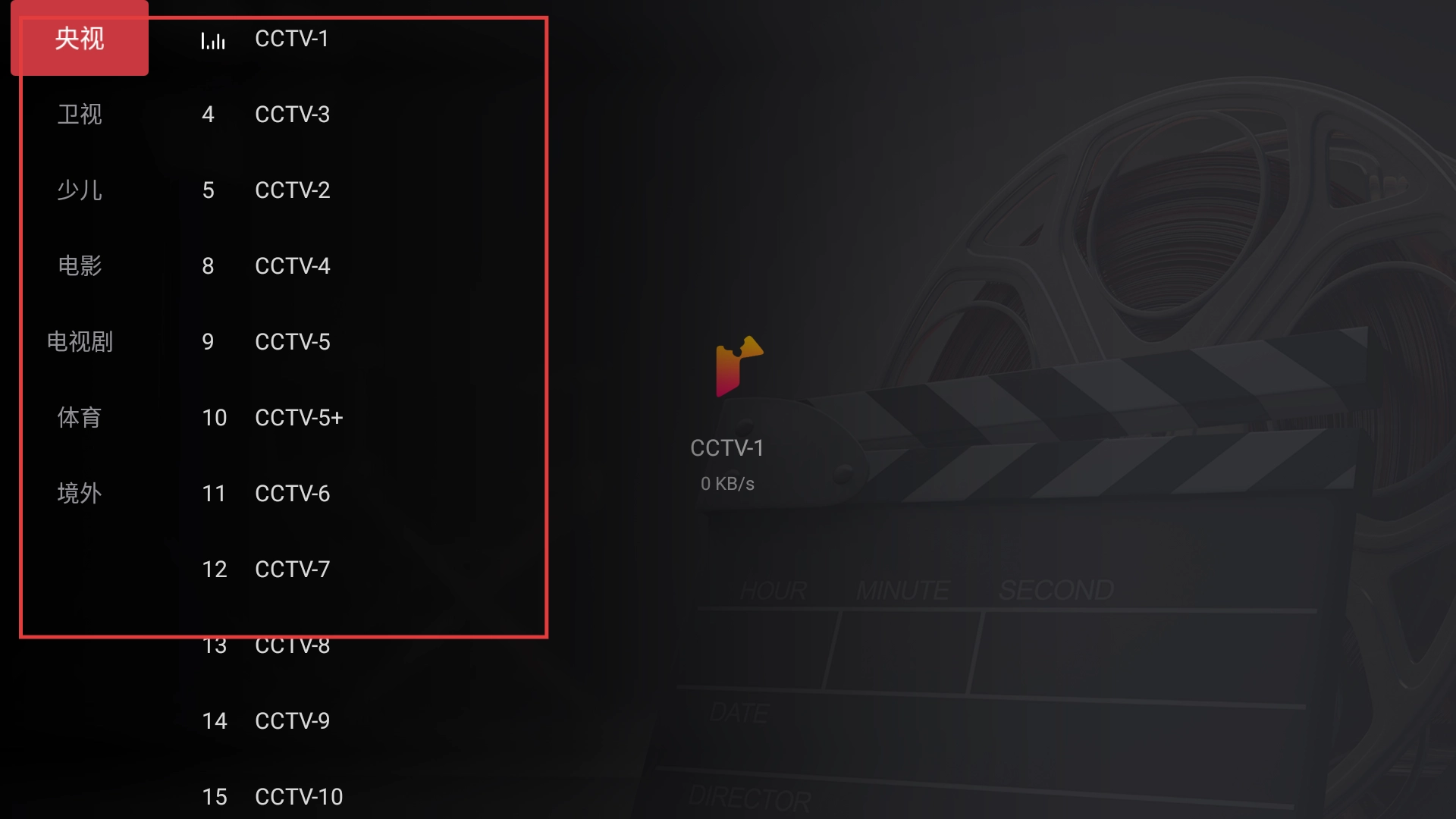 在软件里,点击【央视】分类,就能看到CCTV-1、CCTV-2等多个中央电视台频道,便于大家选择观看新闻、综艺之类的节目。