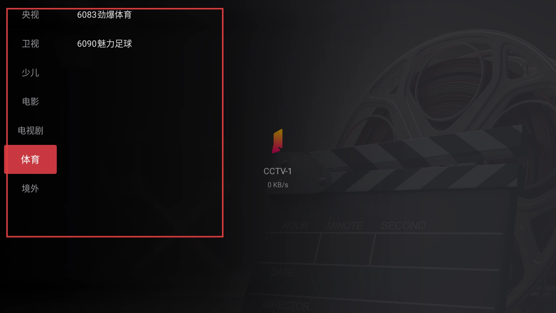 4、点击【体育】分类后,就能找到劲爆体育、魅力足球这类体育频道,方便大家观看各类体育赛事的直播和资讯。