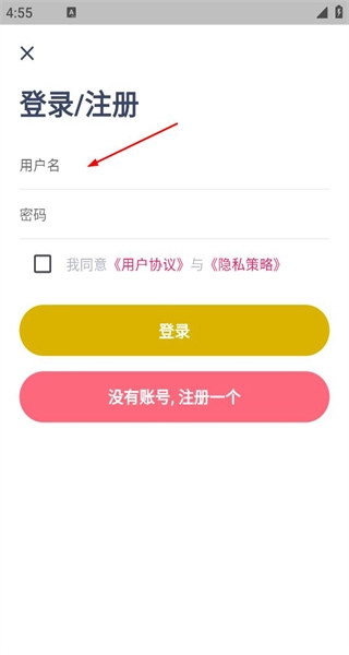 4、进入登录注册页面,看到用户名密码输入框,准备进行账号登录操作。