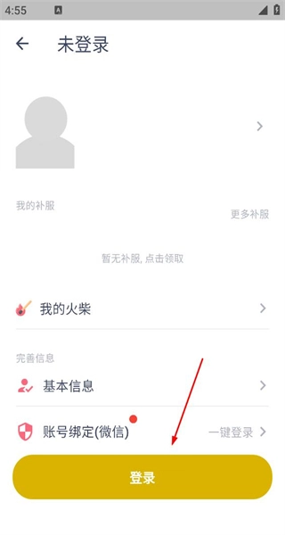3、进入未登录页面,查看基本信息等选项,点击登录按钮,进入登录注册页面。