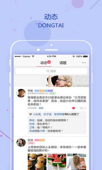 2、把传统线下单位组织的单身联谊活动模式迁移到手机端,助力条件匹配的单身群体达成“门当户对式”的交友需求。