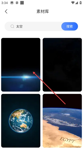 2、进入素材库页面后,在搜索框中输入关键词(例如“太空”),接着点击【搜索】按钮,即可筛选出与该主题相关的素材。