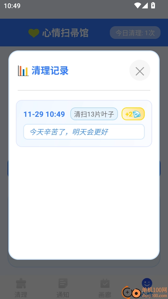 3.在之后进入“心情扫帚馆”界面,点击“清理记录”按钮进入下一步