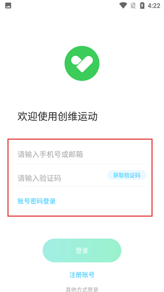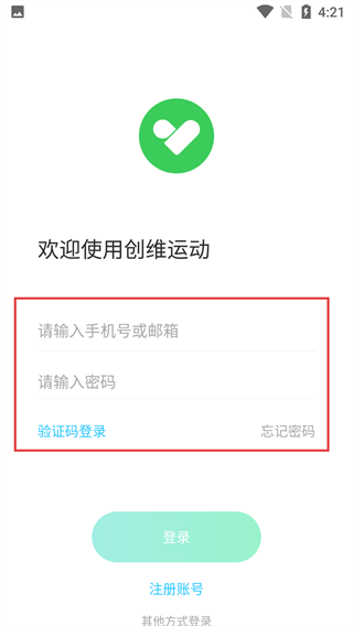 3、进入创维运动登录页,可选账号密码登录,填写【请输入手机号或邮箱】【请输入密码】,也可切换验证码登录,还有注册选项。