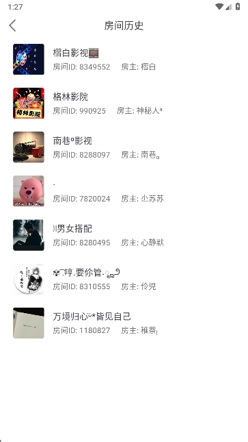2、在弹出房间历史页面点击进去