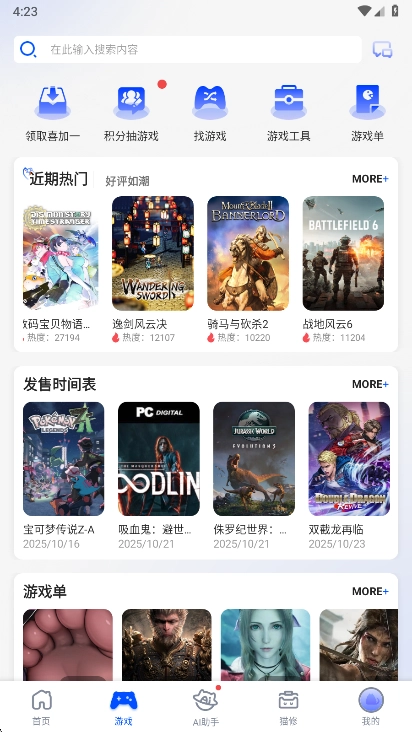 3、在游戏页您还可以获取到各类游戏推荐