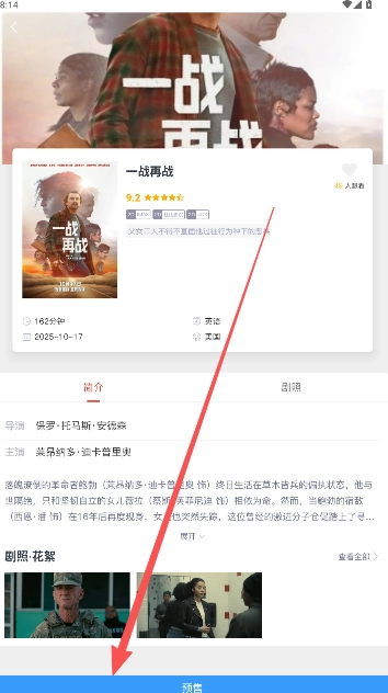 3、电影频道的影片列表涵盖了在售与预售场次,您可根据感兴趣的电影题材查看简介,随后完成下单支付流程。