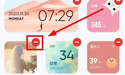 2、然后点击想要删除小组件右上角的减号;