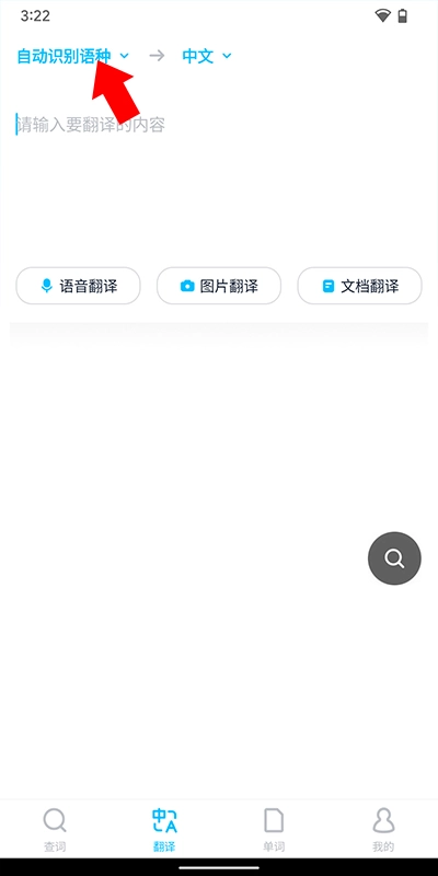 2、把需要翻译的内容复制到上方的待翻译区域就可以了,如果希望程序识别我们指定的语言,那就点击自动识别语种功能并自行选择目标语言。