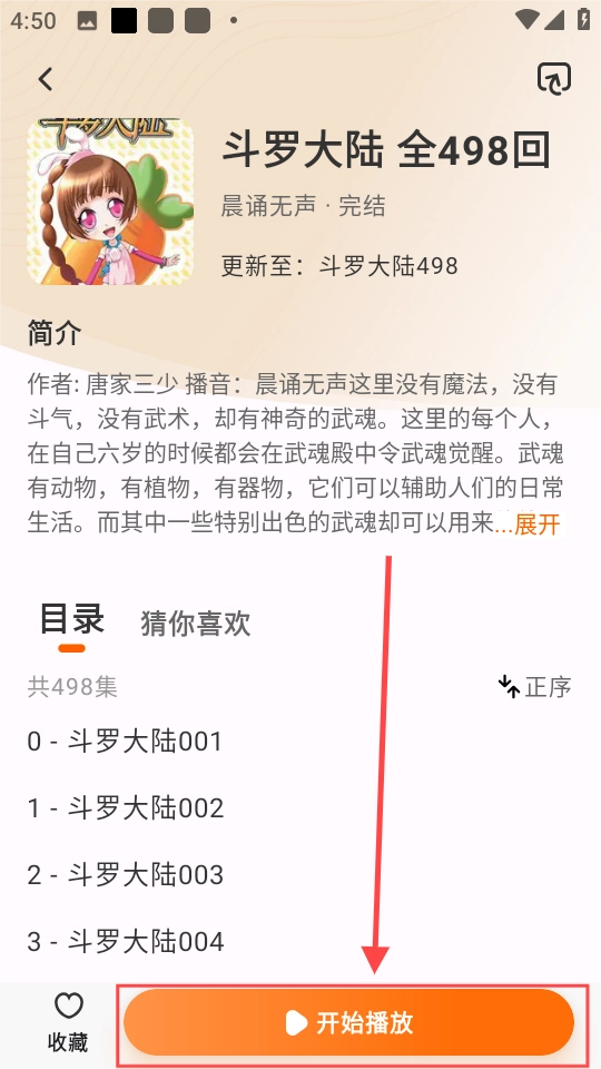 3、挑选一本自己感兴趣的书籍开启试听,这里就用人气作品《斗罗大陆》来举例说明。