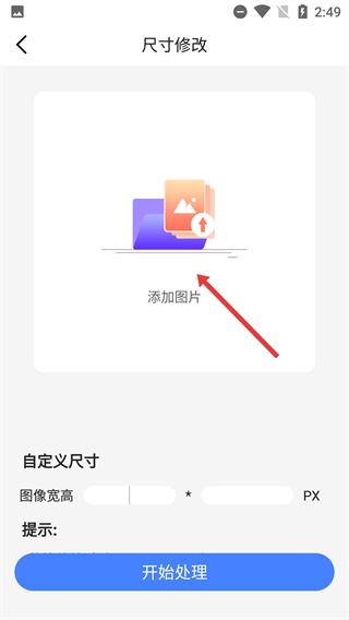 3、在尺寸修改页面点击【添加图片】,选择需要修改尺寸的图片。