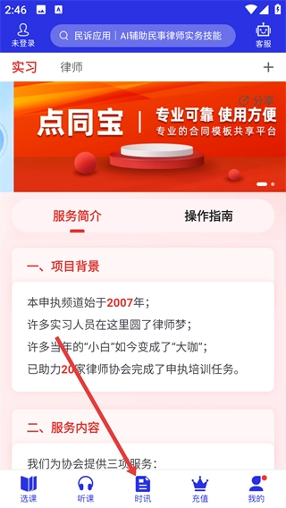 2、在主界面底部找到【时讯】按钮并点击,即可进入点睛时讯页面浏览相关资讯。