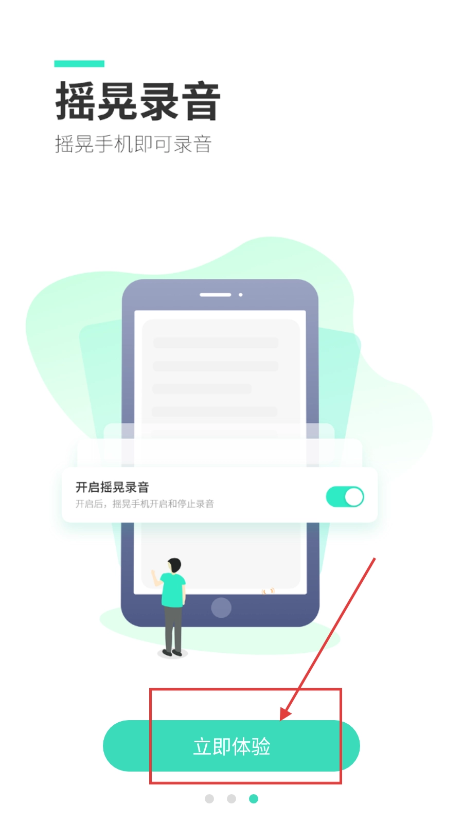 1、在软件启动页面,点击【立即体验】按钮,即可进入录音类主界面。