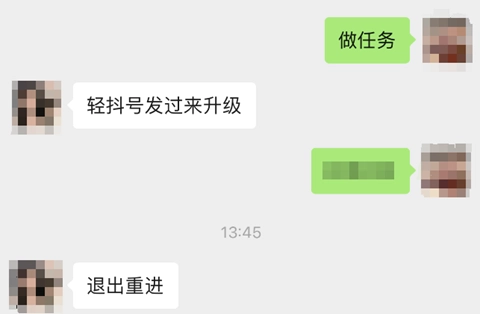 2、由于普通版本的轻抖没有任务功能,因此需要联系客服以升级至支持任务的版本。添加客服后,发送消息“做任务”给客服。客服回复后,将自己的轻抖账号发送给客服。在主页的“我的”部分,个人头像下方会显示轻抖账号,点击复制账号即可。