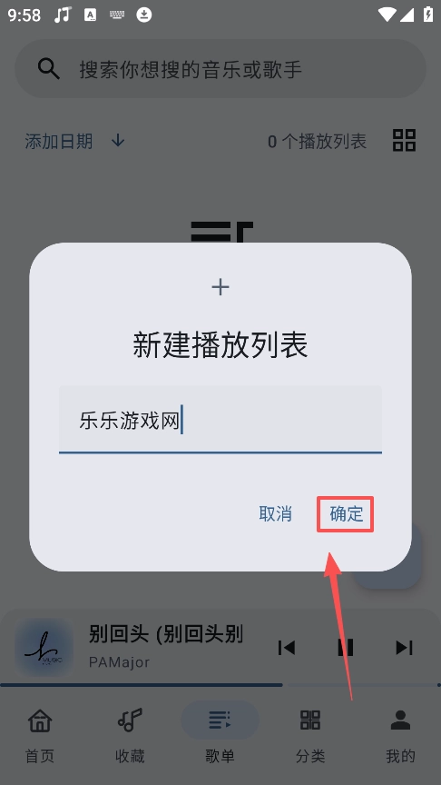 3、输入需要创建的歌单名称
