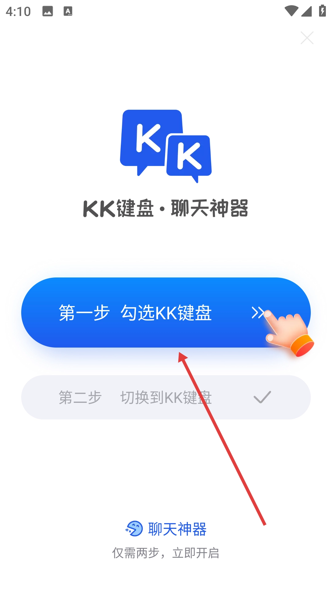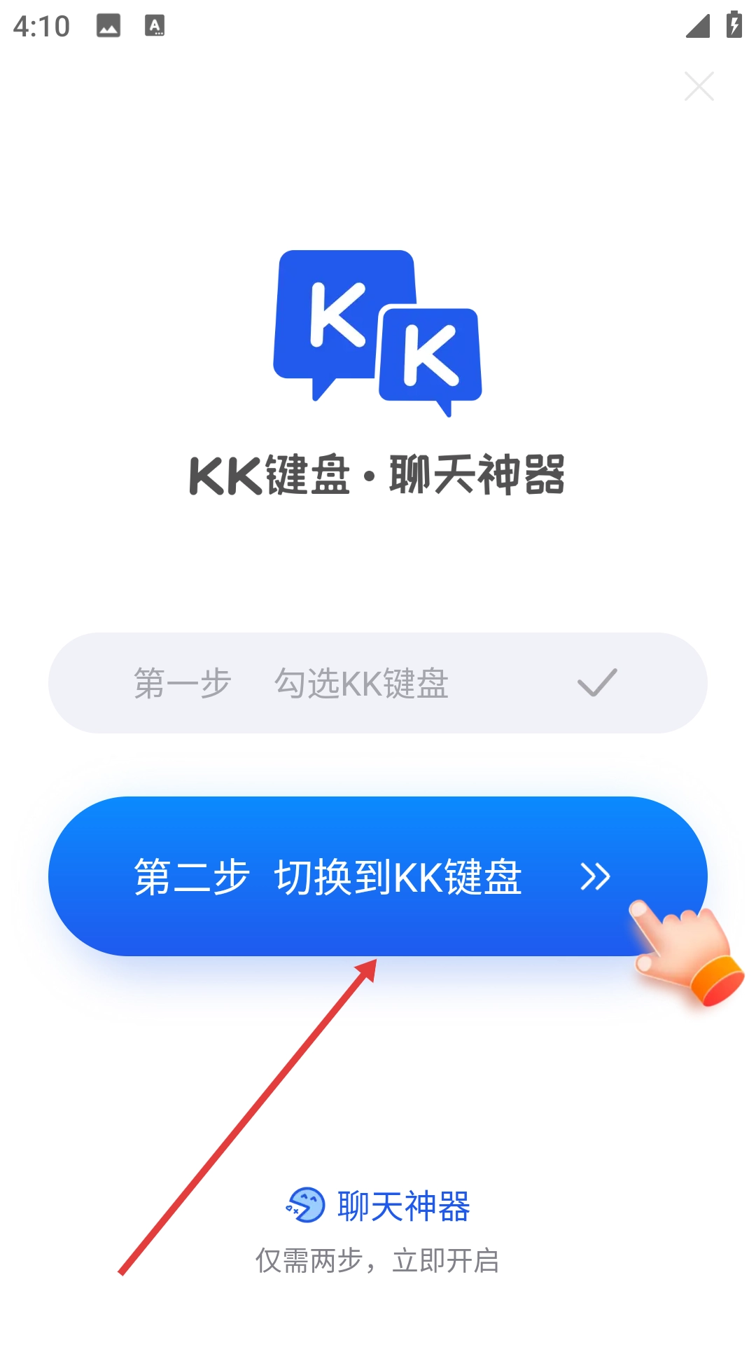 3、点击【第二步 切换到KK键盘】,进入更改键盘的弹窗界面。