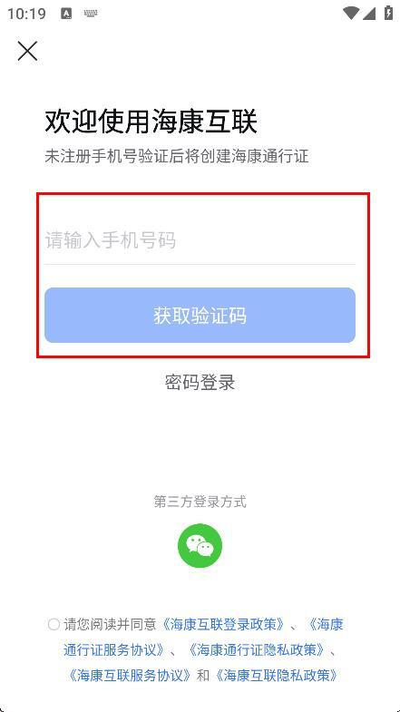4、输入手机号码,点击“获取验证码”按钮,通过短信验证码完成登录操作。