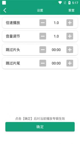 5、然后我们在播放页点击设置,用户即可自定义调整播放倍数、音量、跳过片头片尾等功能。