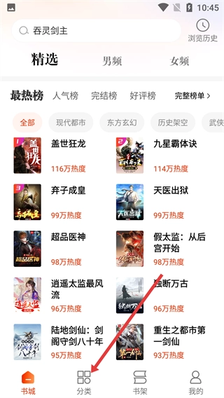 进入主界面后,点击底部的【分类】按钮,就能进入小说分类页面。