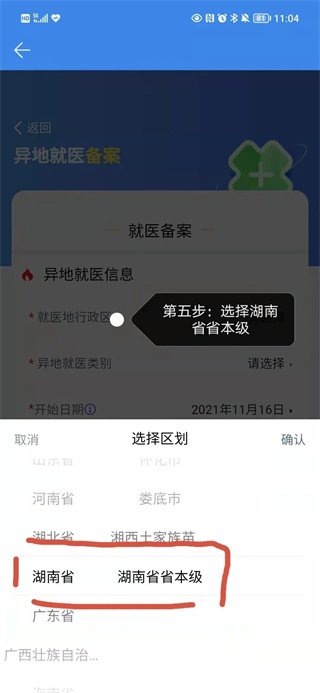 5、选择就医信息,这里可以选择湖南省省本级;