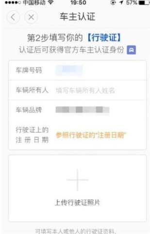 5完成资料上传并确认成功后,需依次填写车辆牌照号、车辆所有人相关信息、车辆品牌型号,以及行驶证上标注的登记日期,同时上传行驶证影像文件,确保画面信息完整可辨。