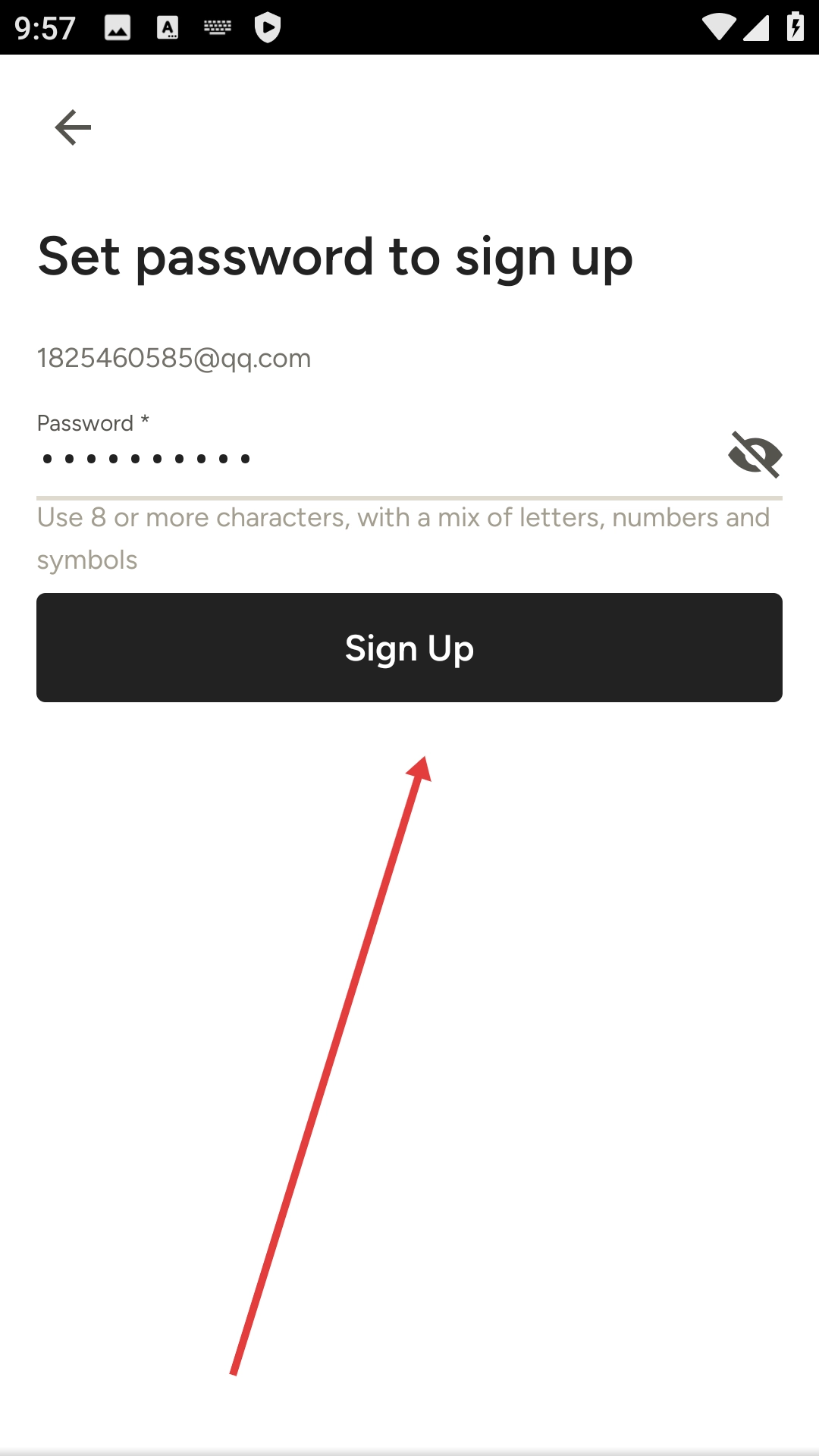 3、于密码设置界面完成密码设置后,点击【Sign-Up】按钮,即可进入自我介绍界面。