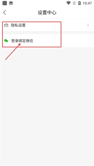 3、在设置中心页面,点击“登录绑定微信”选项,进入微信绑定流程。