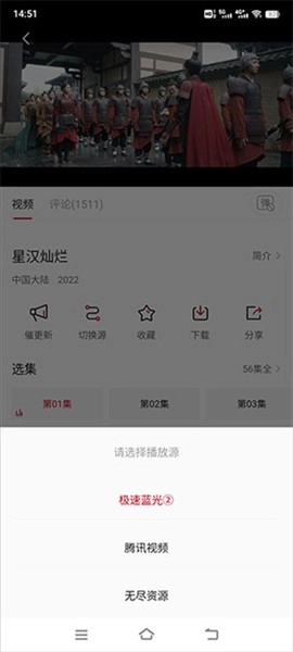 3、点击播放源可切换不同线路,若当前线路未更新,可切换至其他线路观看。