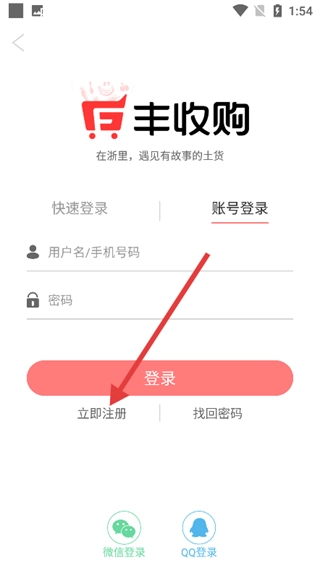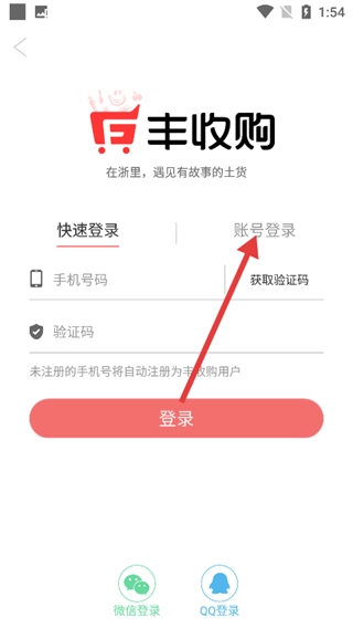 2、在登录页面,选择【账号登录】选项,还可选择快速登录、微信登录、QQ登录等方式。