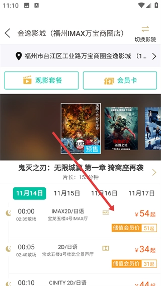 4、进入影院场次页面后,选定观影日期与具体场次(例如【IMAX2D-日语】这类场次),就能开展购票流程了。