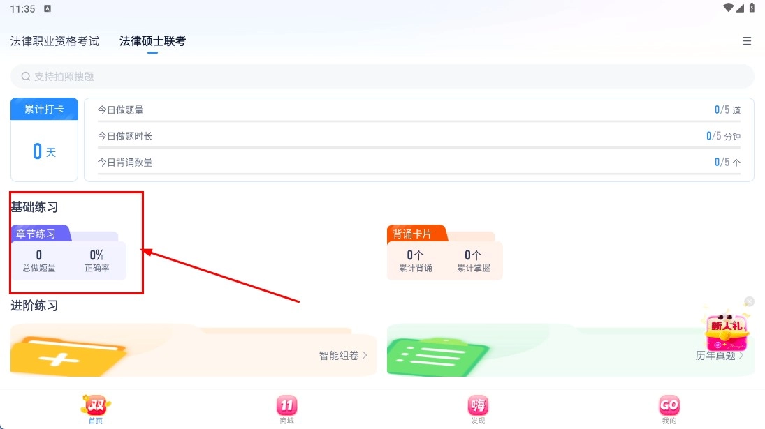 1、点击【基础练习-章节练习-功能选项】,即可进入章节练习页面。