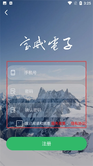 4、注册页面需依次填写【手机号】-设置【密码】-确认密码,勾选服务与隐私协议后,点击【注册】完成账号注册。