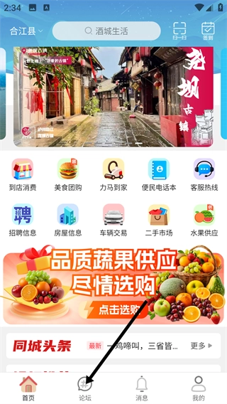 1、在首页点击底部【论坛】选项,进入社区页面。