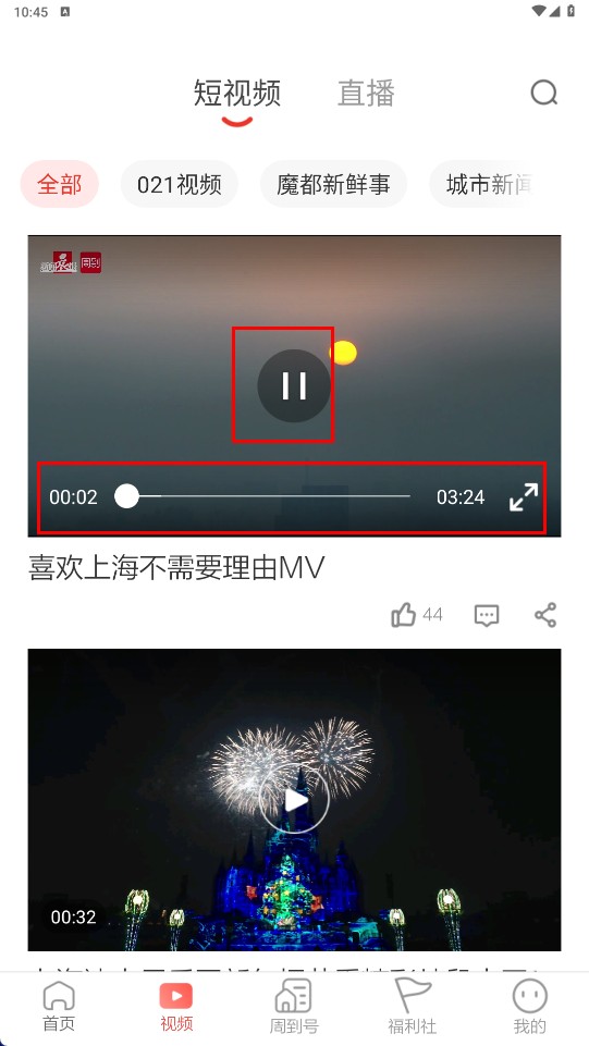 4、进入视频播放页,可观看视频内容,如【喜欢上海不需要理由MV-视频名称】,还能操作播放进度条等。