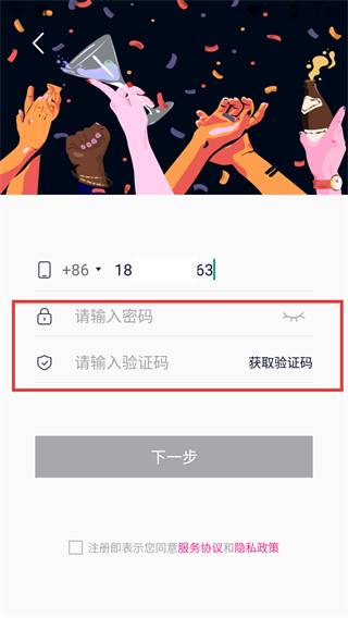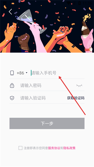 4、勾选同意服务协议与隐私政策后,点击【下一步】按钮,即可完成注册流程。