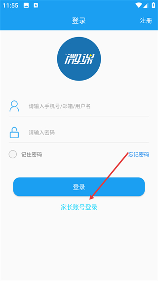2、在登录选择界面点击【家长账号登录】选项,即可进入家长端登录界面。
