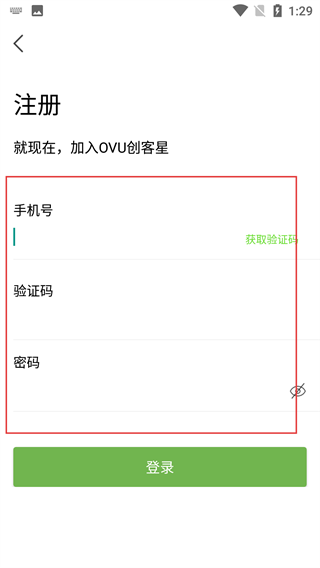 4、进入注册页面后,请按顺序填写【手机号】、【验证码】和【密码】这三项信息,全部填写完成就能完成注册并登录账号。