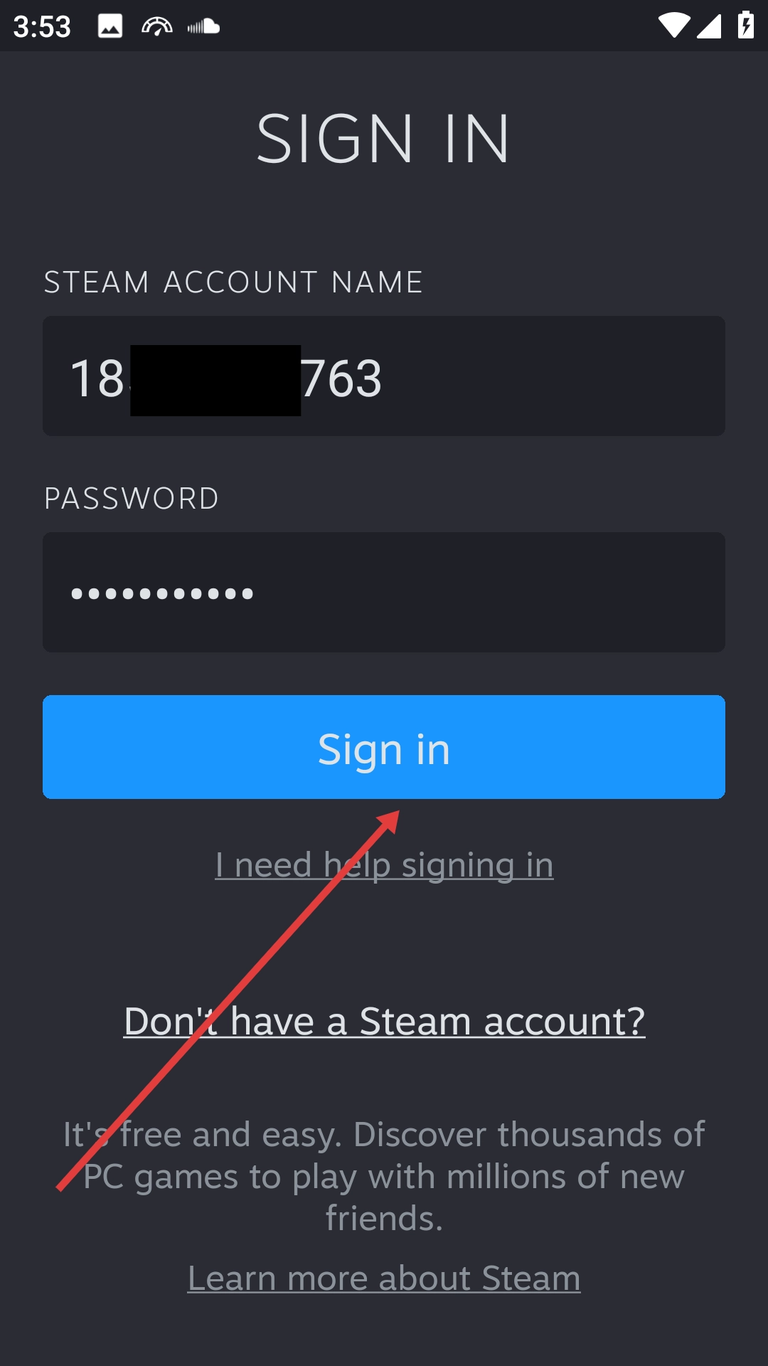 2、信息填写完毕后,点击【Sign-in】按钮,即可完成Steam账户的登录操作。