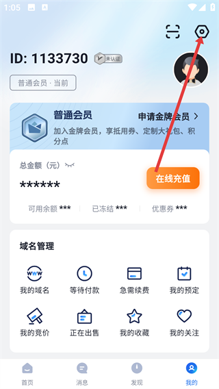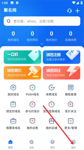 1、在聚名网首页点击右下角的【我的】按钮,进入个人功能页面,以此开启账号相关的操作流程。