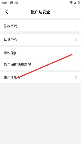 在账户与安全页面中找到并点击【账户注销】选项,就能启动账户注销流程。