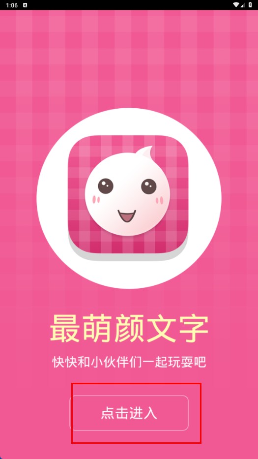 1、点击【点击进入-功能按钮】,即可进入最萌颜文字的主界面。