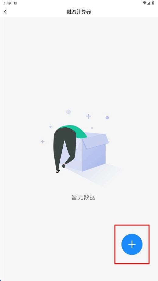 2、在融资计算器页面点击蓝色加号按钮,即可进入试算详情页面。