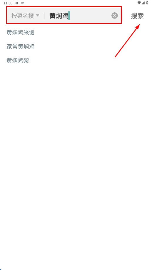 3、在搜索框中输入像“黄焖鸡”这类关键词,点击【搜索】功能按钮,随后查看对应的搜索结果。