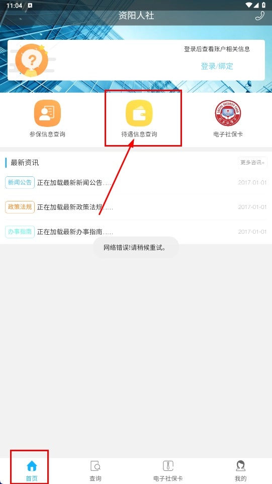 1、在首页点击【待遇信息查询-功能按钮】,进入待遇查询页面。