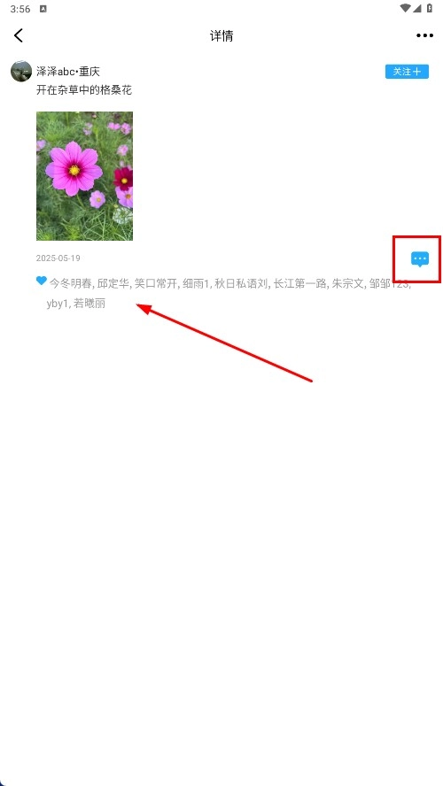 3、在动态详情页,可查看【泽泽abo-重庆】的动态,浏览点赞用户,点击评论按钮互动。