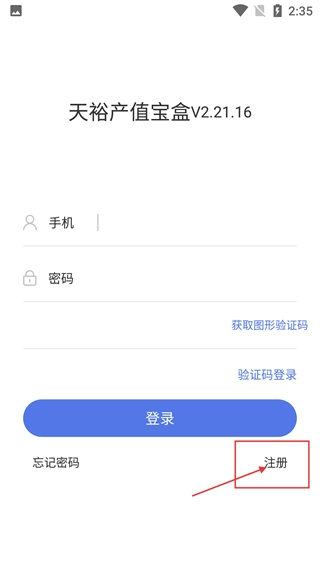 2、进入登录页面后,用户既可以选择手机加密码的方式登录,也能点击【注册】按钮开启账号注册流程,此外该页面还提供验证码登录这一选项。