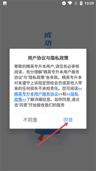 使用前请务必阅读《精英专升本用户服务协议》与《隐私政策》,在充分了解相关条款内容后点击“同意”,即可开启服务使用。